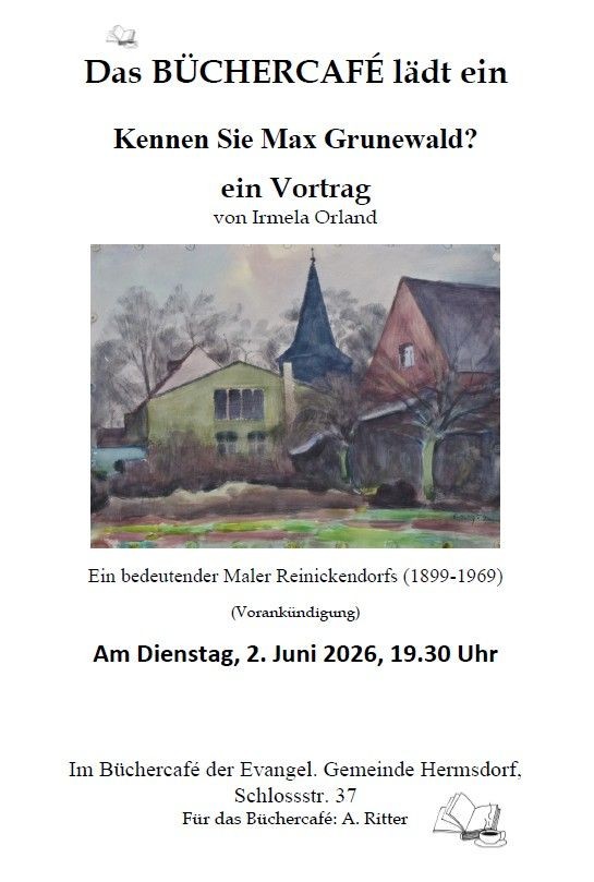 Das Büchercafé lädt ein: Kennen Sie Max Grunwald? Irmela Orland hält einen Vortrag über einen bedeutenden Maler (1889-1969) Reinickendorfs